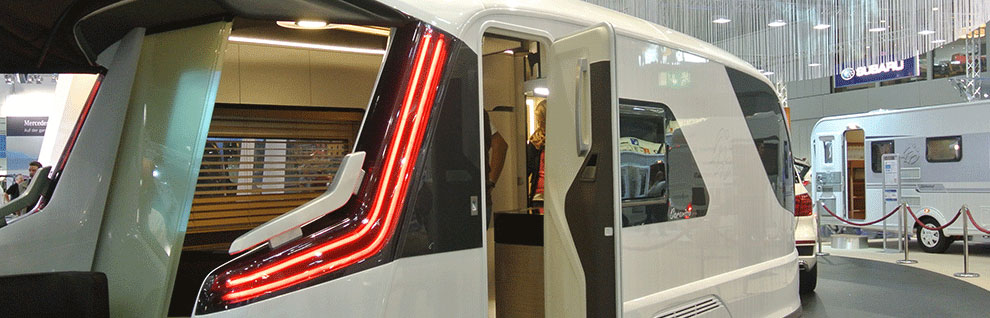 Aus Designersicht sind Raumkonzept und Interieur durch die starke Raumbegrenzung sehr spannend. Es gilt den vorhandenen Raum maximal zu nutzen. Allerdings scheinen die Hersteller der äußeren Form und Gestaltung zu wenig Beachtung zu schenken. Mut zu neuen Konzepten bewiesen nur die Wenigsten. Einer dieser Wenigen war die Firma Knaus Tabbert. Mit dem Caravisio hat Sie eine Designstudie präsentiert, die stark an eine kleine Luxusjacht erinnert. Mit zahlreichen Standbesuchern und staunenden Blicken ist der Caravisio auf jeden Fall ein Messegewinner.